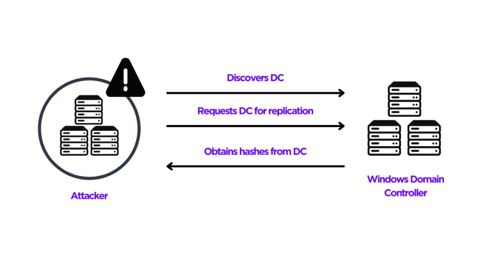 - Uses the DsGetNCChanges operation via DRSUAPI (Directory Replication Service API).