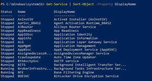 Get-Service | Sort-Object -property DisplayName